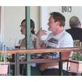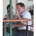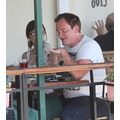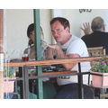 Quentin Tarantino wasn't in the mood to be in front of the cameras yesterday afternoon when we spotted him at Cafe Med in WeHo.