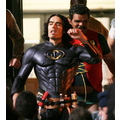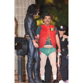 Russell Brand and Luis Guzman shoot Arthur in NYC, and the boys were dressed as Batman and Robin.