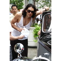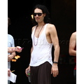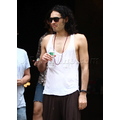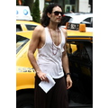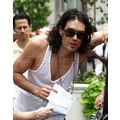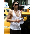 Russell Brand showed off his lean bod as he shot a scene for Arthur on Wednesday afternoon.
