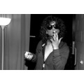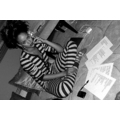 Rihanna posts sexy shots of herself in striped one-piece pajamas.
