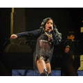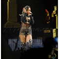 Rihanna wears a see-through shirt during a performance in Stockholm, Sweden