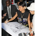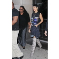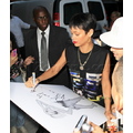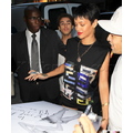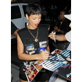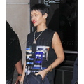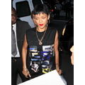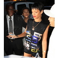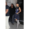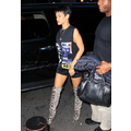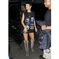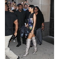 Rihanna greets fans outside of her hotel wearing snakeskin boots.