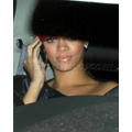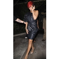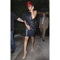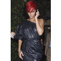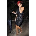 Rihanna looked red hot in a plastic-y dress at Ago in Beverly Hills last night.