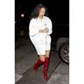 Rihanna rocked a pair of sexy red leather boots for dinner on Tuesday night.