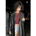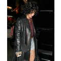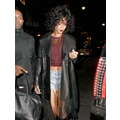 Rihanna rocked big hair and some pretty bold pieces of clothing on Thursday night in New York City.