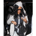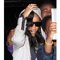 Rihanna holds on tight to her wig!