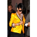 Rihanna rocked a canary yellow blazer and umbrella (ella!) in NYC last night...