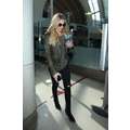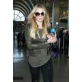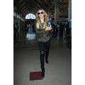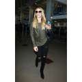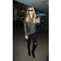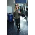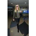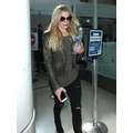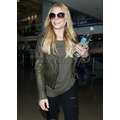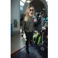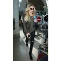 The singer wore ripped jeans and a leather jacket at the airport.