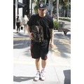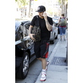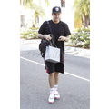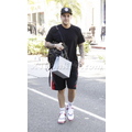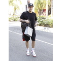 Robert Kardashian looks like he's in a hurry holding his backpack in Beverly Hills.