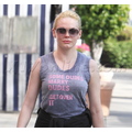 Rose McGowan wears bold shirt after hitting the gym.