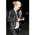 Samantha Ronson smiled as she exited Matsuhisa in West Hollywood last night.
