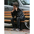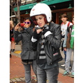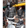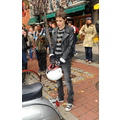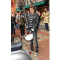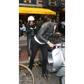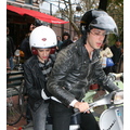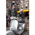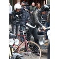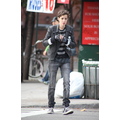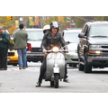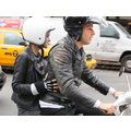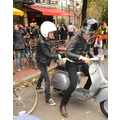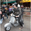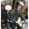 After lunch, Samantha hops on the back of Mark's scooter and the hipster sibs ride off down a New York street!