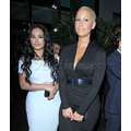 Amber Rose and pal Emily B pose for photos at Sofitel Hotel in Beverly Hills.