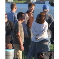 Reese works on her hair while Rob works on set -- doesn't seem fair!