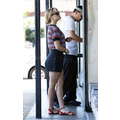 The actress looked fashionable for her lunch date.