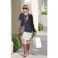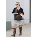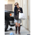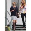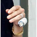 The Oscar winner was all smiles despite the fact that she was rocking a brace on her pinky on Monday.