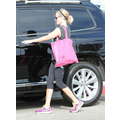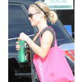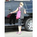 Reese Witherspoon leaving Burn 60 after working out with friends with a pink bag and big water bottle.