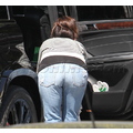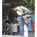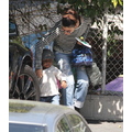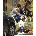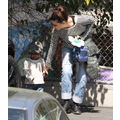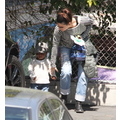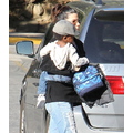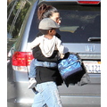 The actress picks up her little bundle Louie from school.