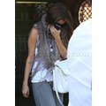 The singer hides behind her scarf.