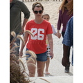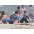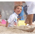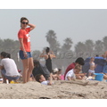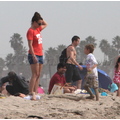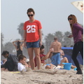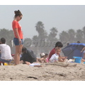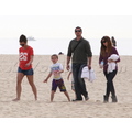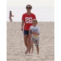 Britney Spears spends the day at the beach with her boys in Santa Barbara with a big bodyguard. She wears shorts and a tee shirt and doesn't show off in a bikini.