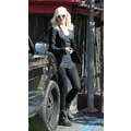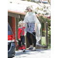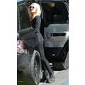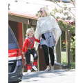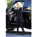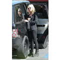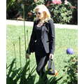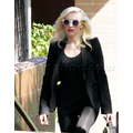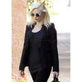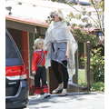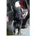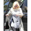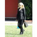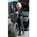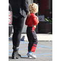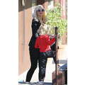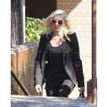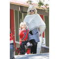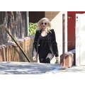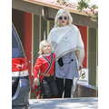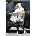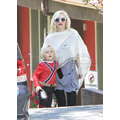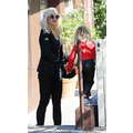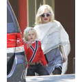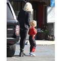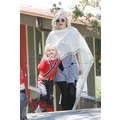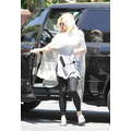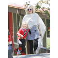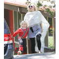 Gwen Stefani was dressed for a funeral as she dropped off son Zuma at school only to changes clothes to a white shawl and gray ripped tee shirt in the afternoon.