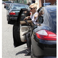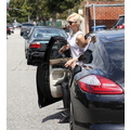 The singer heads to the studio in a bold outfit.