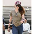 Kristen Stewart wore a ripped t-shirt and jeans to a meeting in Hollywood on Thursday.
