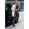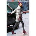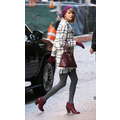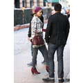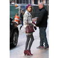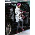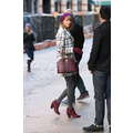 Taylor Swift looking cute in her plaid jacket and beanie when returning to her New York City apartment.