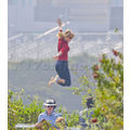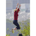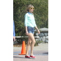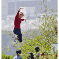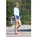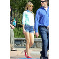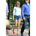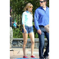 Taylor Swift goes for a jump on a trampoline for a Keds photo shoot.