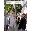 Quentin toasts the unveiling of a street named after him at the Babelsberg Studio outside of Berlin.