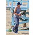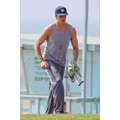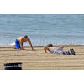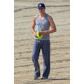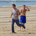 Tom Brady worked up a sweat on the beach in Santa Monica on Thursday.