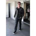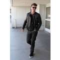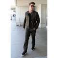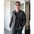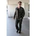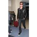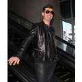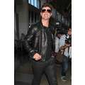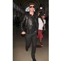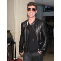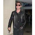 Robin Thicke appeared cool and calm (and oddly really giggly) in his leather jacket earlier today when he touched down at LAX.