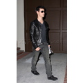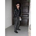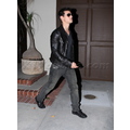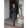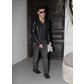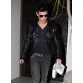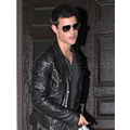 Taylor Lautner was snapped leaving a friend's house in Hollywood last night in his uniform of leather and denim. But shades at night? Can he really pull that off?