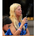 Tara Reid was wearing the same blue dress that she wore on Monday night when she tripped and fell in the street.