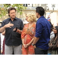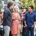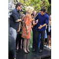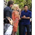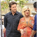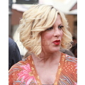 Tori Spelling chatted with Extra's Mario Lopez at the Grove in Los Angeles yesterday.