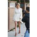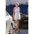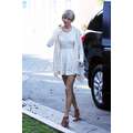 Wearing a tiny white dress, Taylor Swift doesn't care that it's winter when she showed off her amazing body after a trip to Ballet Bodies in Los Angeles on Wednesday.