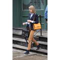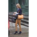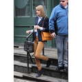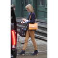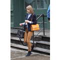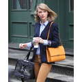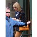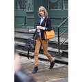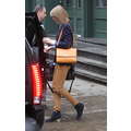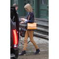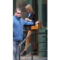 Taylor Swift left her new New York City apartment on Sunday with her feline friend Meredith.