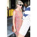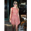 Taylor Swift leaving lunch in Beverly Hills in dark shades and a sundress.