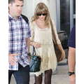Taylor Swift returned from South Africa on Tuesday after shooting scenes for The Giver.