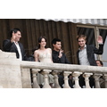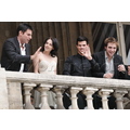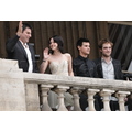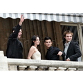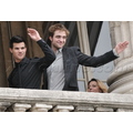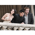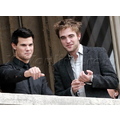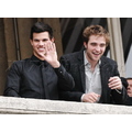 Robert Pattinson, Kristen Stewart and Taylor Lautner greet fans on the balcony of their Parisian hotel!