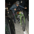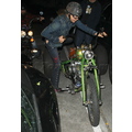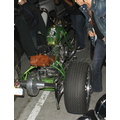 Steven Tyler rides his custom green motorcycle around LA.
