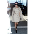 Victoria Beckham suits up in a drape-trench hybrid for a flight out of LAX.