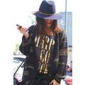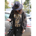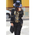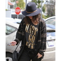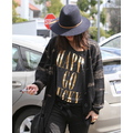 Vanessa Hudgens wears a Happy Go Lucky shirt while leaving a nail salon
