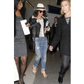 Vanessa wears a white hat and shredded jeans while at the airport.