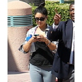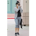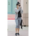 Vanessa Hudgens appears to be covering something up as she leaves the gym Thursday.