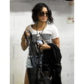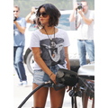 Vanessa Hudgens is surrounded by photos as she fills up her tank in LA.