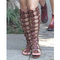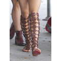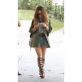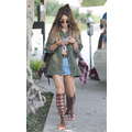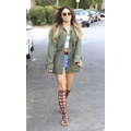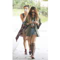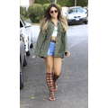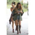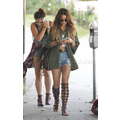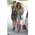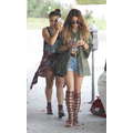 Vanessa Hudgens wearing crazy gladiator sandals and texting on her phone out with her sister Stella heading to lunch.