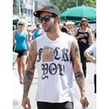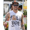 Pete Wentz didn't exactly wear a PG shirt when we spotted him at the Farmers Market in Los Angeles on Sunday with girlfriend Meagan Camper.