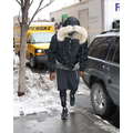Amid Grammy controversy, Kanye West hides his head in shame in New York City on Feb. 10, 2015.