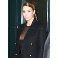 Kim Kardashian showed off her breasts in a sheer top with a bra on Tuesday evening.